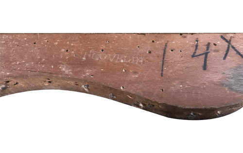 - la première : si dans un ensemble de sièges destinés au même client le menuisier avait bien la possibilité d’estampiller chacun d’eux, il lui arrivait de n’en estampillé que quelques-uns uns. Ce qui explique que cet ensemble, s’il se trouvait divisé aux hasards du temps, perde en partie, mais à jamais, son identité, celle de l’auteur.